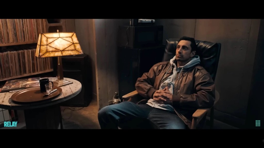 Ash (Riz Ahmed) relaxes surrounded by his record collection.